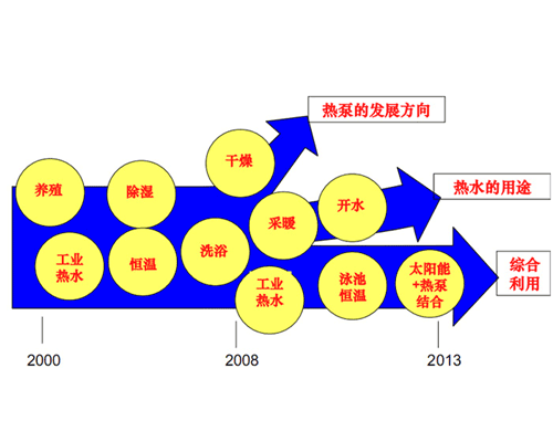 眾多企業(yè)紛紛進(jìn)入,企業(yè)數(shù)量,2005年8月54家,到目前估計(jì)近600家。大型企業(yè)陸續(xù)介入。企業(yè)主要集中在華南,華東。主要來(lái)源分為四類:傳統(tǒng)制冷企業(yè);專業(yè)企業(yè);太陽(yáng)能熱水企業(yè);電燃?xì)鉄崴髽I(yè)。