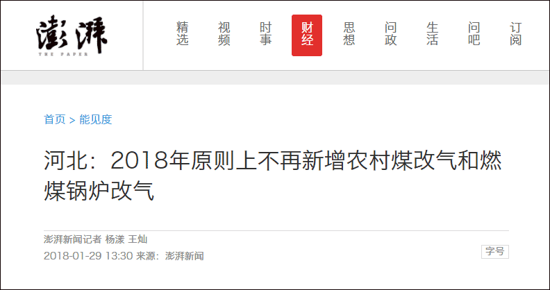1月29日獲悉,河北省發(fā)改委已于近日下發(fā)文件,要求“除2017年結(jié)轉(zhuǎn)的農(nóng)村煤改氣任務(wù)外,2018年原則上不再新增農(nóng)村煤改氣和燃煤鍋爐改氣”。