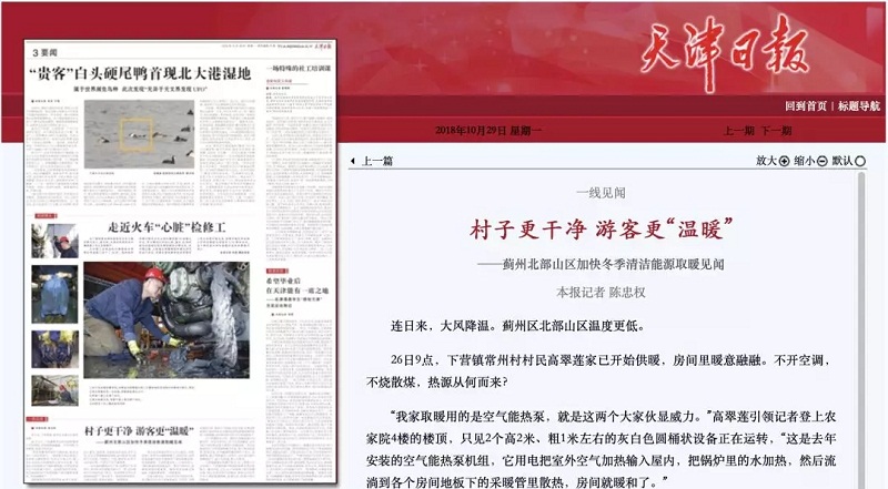 據(jù)天津新聞報(bào)道,使用了空氣源熱泵供暖之后,“村子更干凈、游客更溫暖”。農(nóng)家樂的老板也對(duì)空氣源熱泵的供暖效果贊不絕口。以下為報(bào)道部分內(nèi)容: