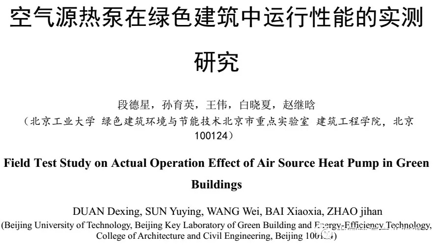 空氣源熱泵在綠色建筑中運(yùn)行性能的實(shí)測(cè)研究