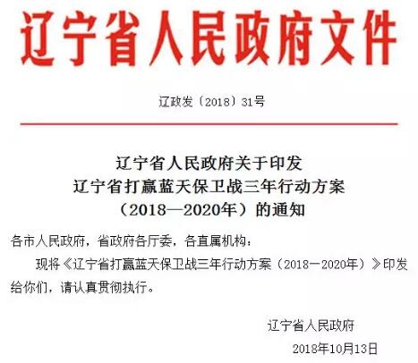 遼寧省打贏藍(lán)天保衛(wèi)戰(zhàn)三年行動方案(2018—2020年)