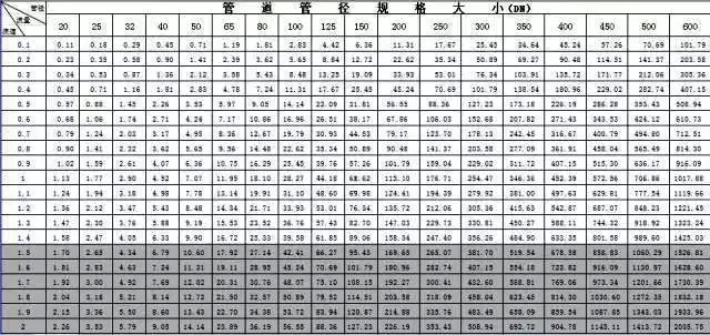 管道的選配要根據(jù)系統(tǒng)設計的流量流速要求選配管徑規(guī)格,具體可參考下表: