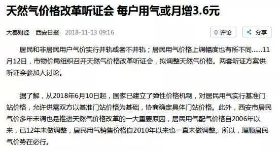 近日,西安舉行了天然氣價(jià)格改革聽(tīng)證會(huì)。據(jù)了解,目前西安居民用氣一階氣價(jià)每立方米1.98元,非居民氣價(jià)(不限量)每立方米2.30元;在集中采暖方面,小區(qū)自備鍋爐氣價(jià)為1.98元/立方米,市政集中供暖氣價(jià)為2.04元/立方米。