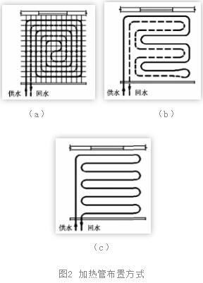 選用末端設(shè)備時應(yīng)考慮房間功能、生活習慣和運行方式,從舒適性和經(jīng)濟性方面考慮,選擇適合住戶需求的地板輻射供暖、風機盤管供暖、散熱器供暖形式。新建與既有建筑增設(shè)供暖設(shè)施要加以區(qū)別:新建住宅可完全按設(shè)計規(guī)范規(guī)定進行,而既有建筑增設(shè)供暖設(shè)施要考慮住戶的具體要求,可進行局部主要房間加裝供暖設(shè)施。既有建筑增設(shè)地板輻射供暖時應(yīng)考慮荷載,盡量采用干式地板供暖,并考慮局部供暖和家具擺放遮擋。地面飾面層應(yīng)采用熱阻小的材料。各環(huán)路長度應(yīng)盡可能一致,并加設(shè)調(diào)節(jié)和環(huán)路關(guān)斷閥門。加熱管布置方式可采用圖2的形式。
