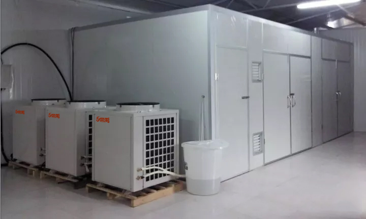 通常采用5-10cm的保溫板制作,保溫材料一般使用巖棉、聚苯、酚醛、聚氨酯材料,目前使用得最多而且能達(dá)到國家標(biāo)準(zhǔn)的是聚氨酯保溫板,如果庫體材料的使用壽命或保溫效果達(dá)不到空氣源熱泵烘干的要求,即使主機(jī)再節(jié)能,整個(gè)系統(tǒng)的節(jié)能效果也不會(huì)很好。