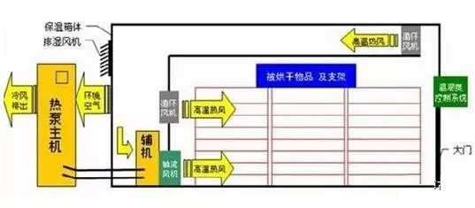 空氣源熱泵烘干系統(tǒng)是由熱泵來提供熱源,對(duì)濕物料進(jìn)行加熱,從而提高空氣的溫度和干燥度,實(shí)現(xiàn)物料烘干(干燥)的裝置。熱高溫?zé)岜煤娓蓹C(jī)組利用逆卡諾原理,從周圍環(huán)境中吸取熱量,并把它傳遞給被加熱的對(duì)象(溫度較高的物體)。