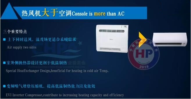 那么,熱泵熱風(fēng)機是什么呢?熱泵熱風(fēng)機是強化制熱的空調(diào),跟空調(diào)沒有本質(zhì)的差異。熱風(fēng)機優(yōu)于空調(diào)三個重要特點:一是上下同時送風(fēng),溫度場更適合采暖需求;二是室外側(cè)換熱器設(shè)計更利于低溫制熱;三是變頻噴氣增焓壓縮機,提高低溫制熱能力以及能效。