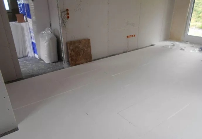 地暖地面構(gòu)造中的砂漿面層,已經(jīng)澆注完成