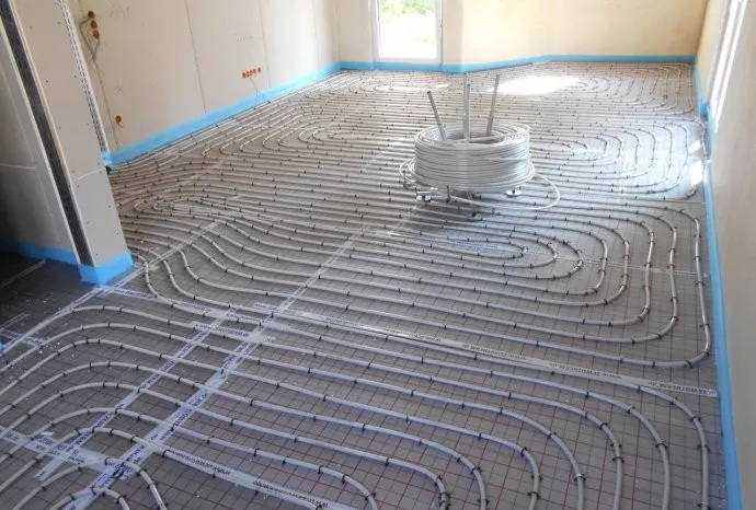 白色的地暖管線(xiàn),布設(shè)施工現(xiàn)場(chǎng)一瞥01