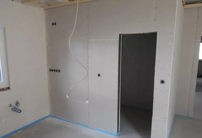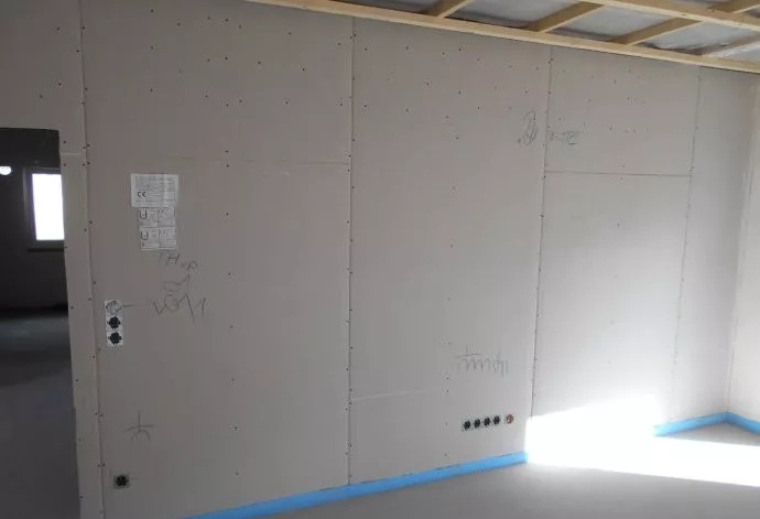 室內(nèi)石膏板墻面,機(jī)械噴涂專(zhuān)用涂料,裝飾施工現(xiàn)場(chǎng)
