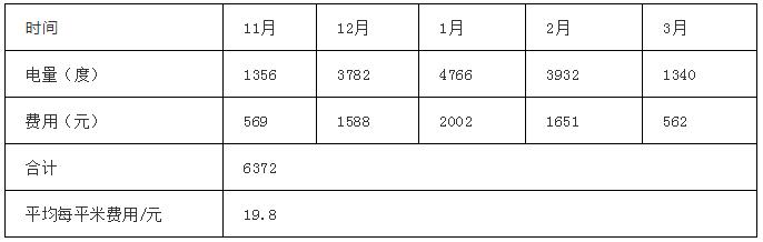 通過(guò)一個(gè)冬天檢測(cè),室內(nèi)采暖溫度設(shè)置恒溫20℃左右采暖,運(yùn)行數(shù)據(jù)如表4。據(jù)客戶(hù)反饋,一個(gè)采暖季下來(lái)才六千多元,平均一個(gè)月僅1200多元,節(jié)能明顯?蛻(hù)表示:“空氣源熱泵采暖效果很好,相比燒煤舒服多了,省去了很多麻煩,運(yùn)行費(fèi)用也不高!